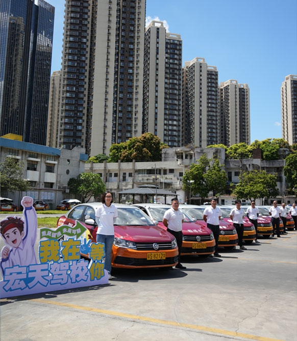 东莞市宏天驾校成立于2007年,是经政府批准成立的全新直营驾校,目前已成长为东莞驾校行业标杆企业,考试合格率常年位居东莞驾校行业前三名。总部位于东莞市南城区建设路14号之3号场内办公楼,在东莞核心镇街设有50多个直营报名店面,公司下设南城训练场、东城训练场、虎门训练场、长安训练场、常平训练场等15个大型灯光训练场。经过十六年的稳健发展,宏天驾校现有教职员工160余人,各类全新教练车220余台,教练车型与考试车辆车型新捷达完全一致,自动档车辆数量50余台,满足学员多层次的学车需求。